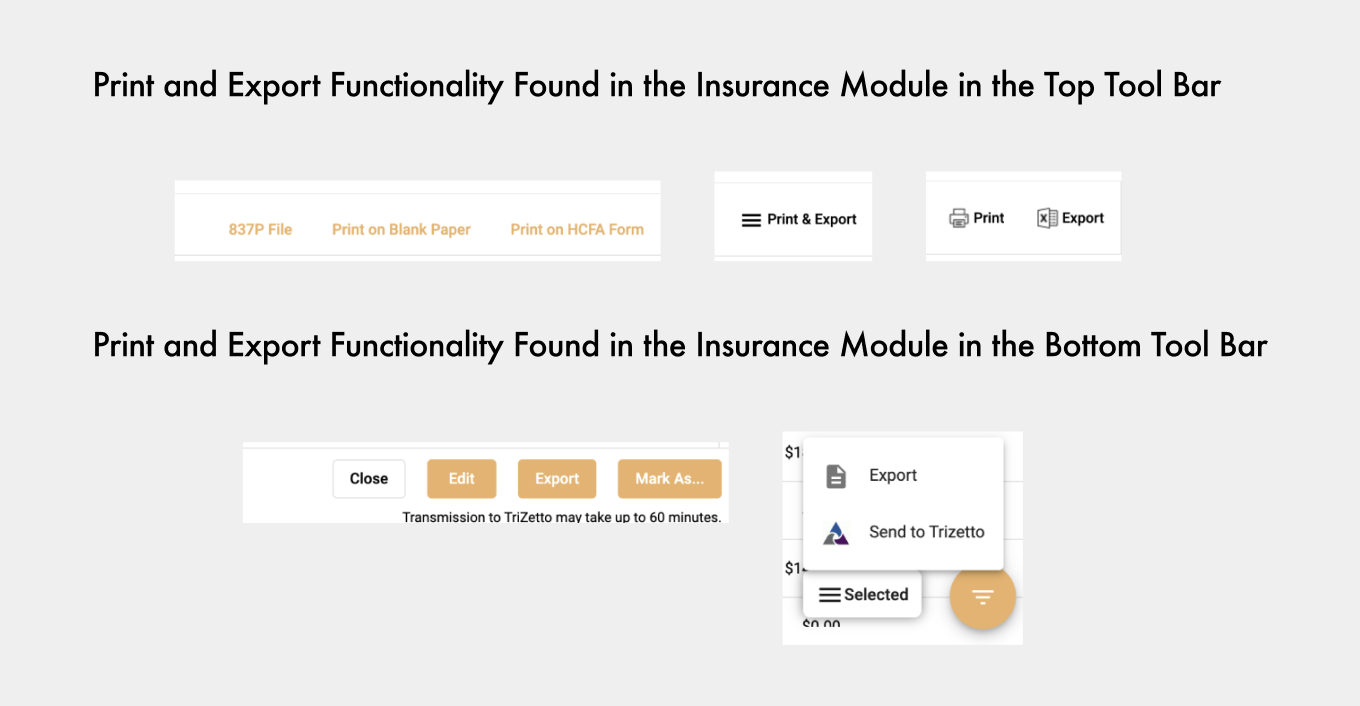 On some screens, print and export buttons sat in the top-right corner, while on other pages they were on the top left or bottom right of the screen. Some buttons were hidden behind icons that were being misused entirely. I also found that we had several inconsistencies with our delete buttons. I catalogued these issues and brought them to management and the development team so they could be addressed in future updates.